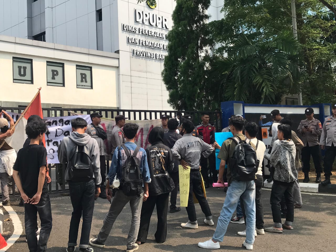 Gerakan Aksi Moral Mahasiswa (GAMMA) Kabupaten Lebak, gelar unjuk rasa di depan kantor Dinas PUPR Provinsi Banten, Selasa (30/07/2024).
