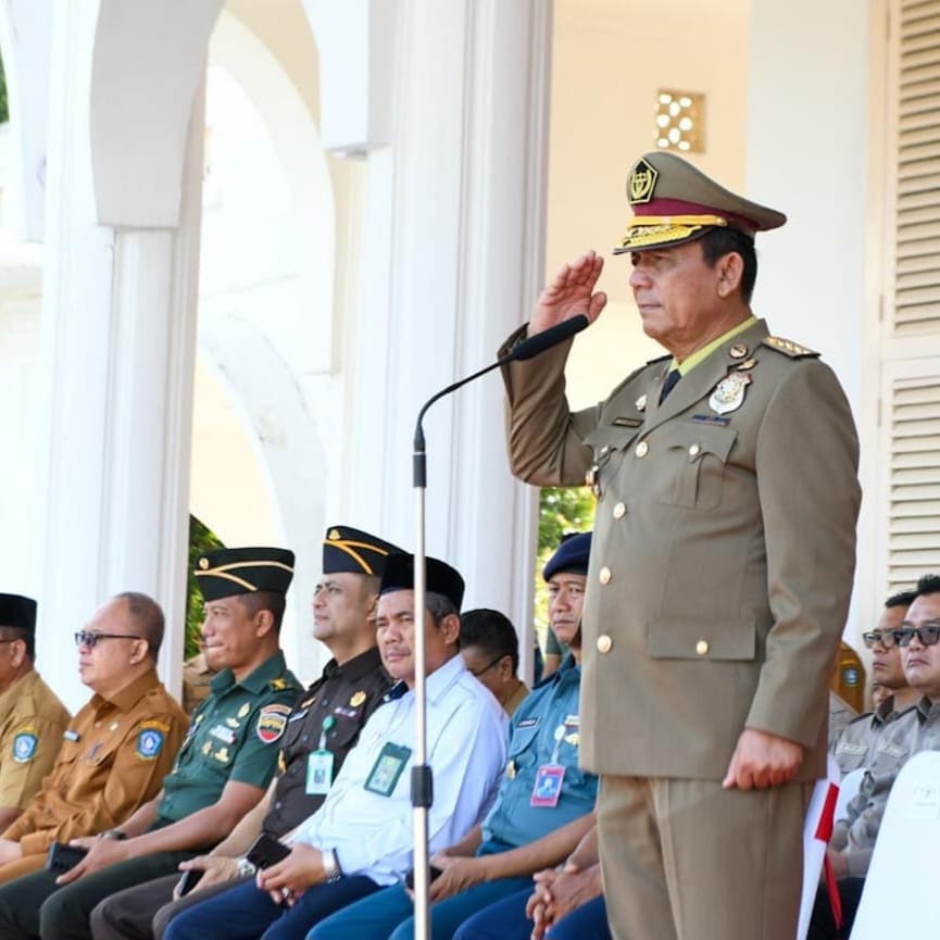 Gubernur Provinsi Kepulauan Riau (Kepri) Ansar Ahmad, memimpin apel peringatan Bulan Keselamatan dan Kesehatan Kerja (K3) Nasional Tingkat Provinsi Kepri di Halaman Gedung Daerah, Kota Tanjungpinang, Senin (29/1/2024).