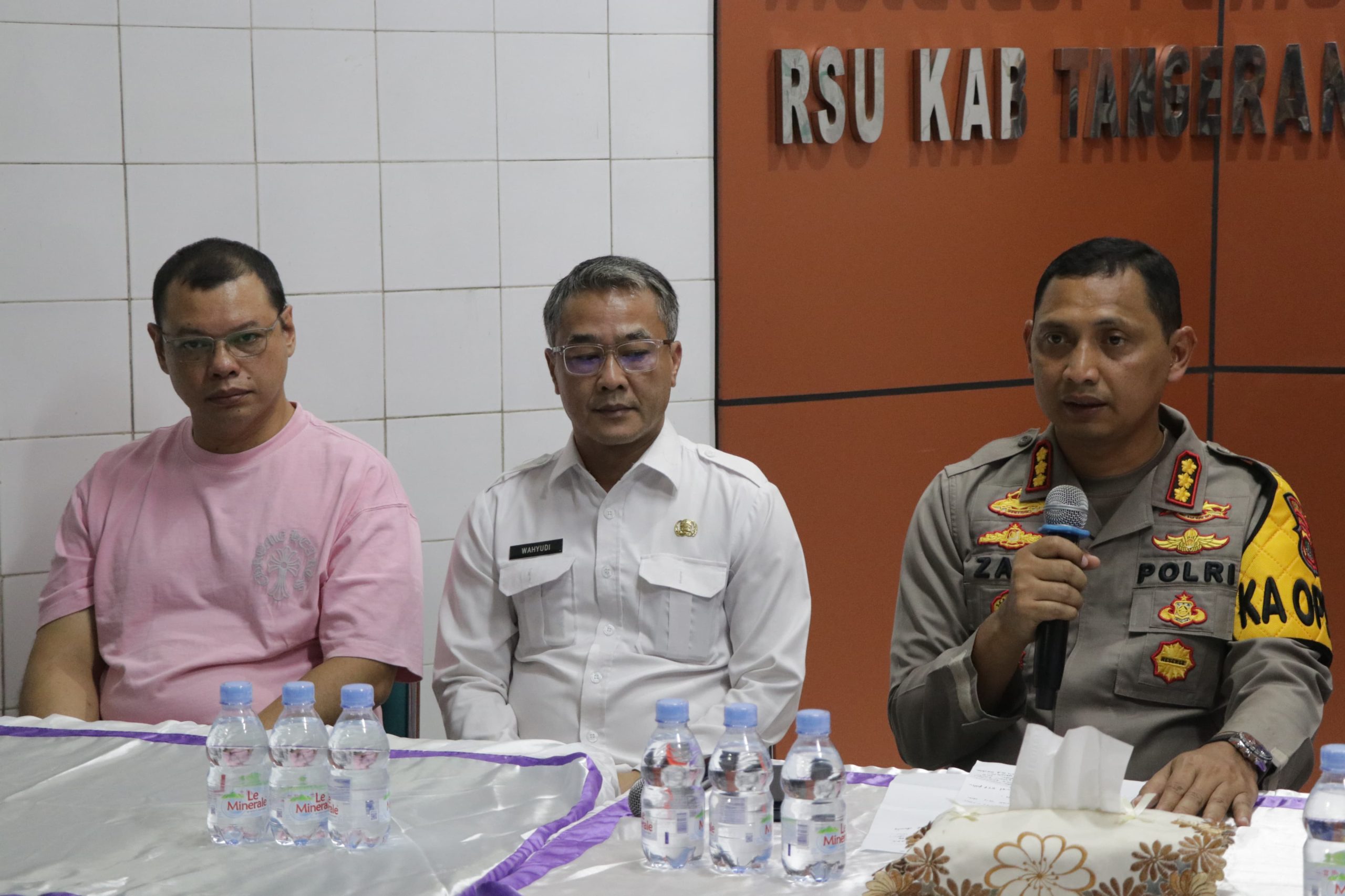 “Tindakan penanganan medis yang telah kami dilakukan setelah menerima laporan korban melompat dari atap rumah majikannya itu, di tanggal 29 Mei, korban segera kami bawa ke RS Tiara. Lalu keesokan hari 30 Mei 2024 korban dipindahkan ke RSUD Kabupaten Tangerang, untuk perawatan lebih intensif, 1 Juni pihak RSUD menyatakan jika korban tidak sadarkan diri dan dimasukkan ke ruang ICU, dan di hari Rabu, 5 Juni 2024 pihak RS menyatakan jika korban meninggal dunia,” terang Kapolres Metro Tangerang Kota, Kombes Pol Zain Dwi Nugroho, bersama Dirut RSUD kabupaten Tangerang, Asisten 3 Pemkot Tangerang dan Kadinsos Kota Tangerang, dalam press release di depan ruang Instalasi Pemulasaraan Jenazah, Rabu (5/6/2024) malam WIB.