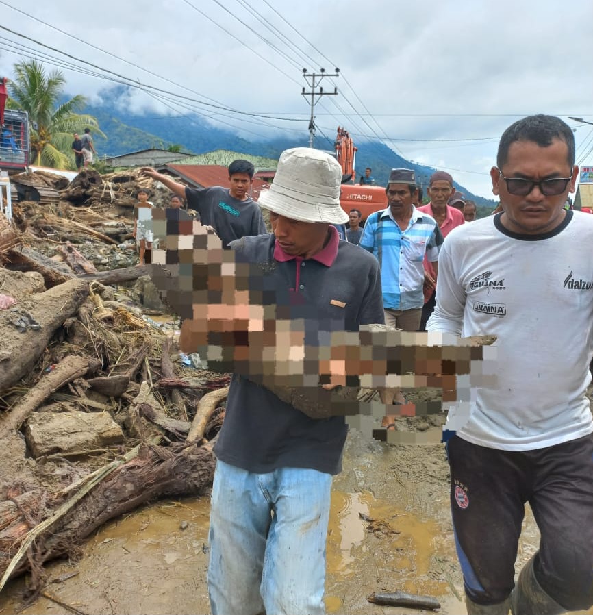 Balita Korban hanyut banjir bandang, Abass (2), warga Desa Kampung Baru, Kecamatan Semadam, Aceh Tenggara ditemukan meninggal dunia. Bayi yang sempat hilang tersebut ditemukan di bawah reruntuhan rumah pada Selasa (14/11/2023).