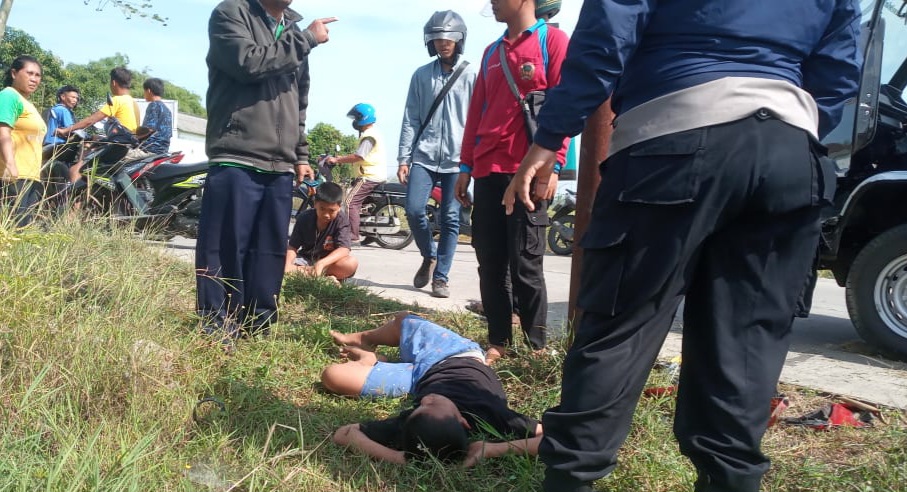 Kendaraan remuk bagian mukanya, dan terhenti halang tiang. Sedangkan kedua korban terpental melintasi tiang listrik. Bahkan, tubuh Yusuf yang dibonceng nampak melesat tak kurang sejauh 3 meter.