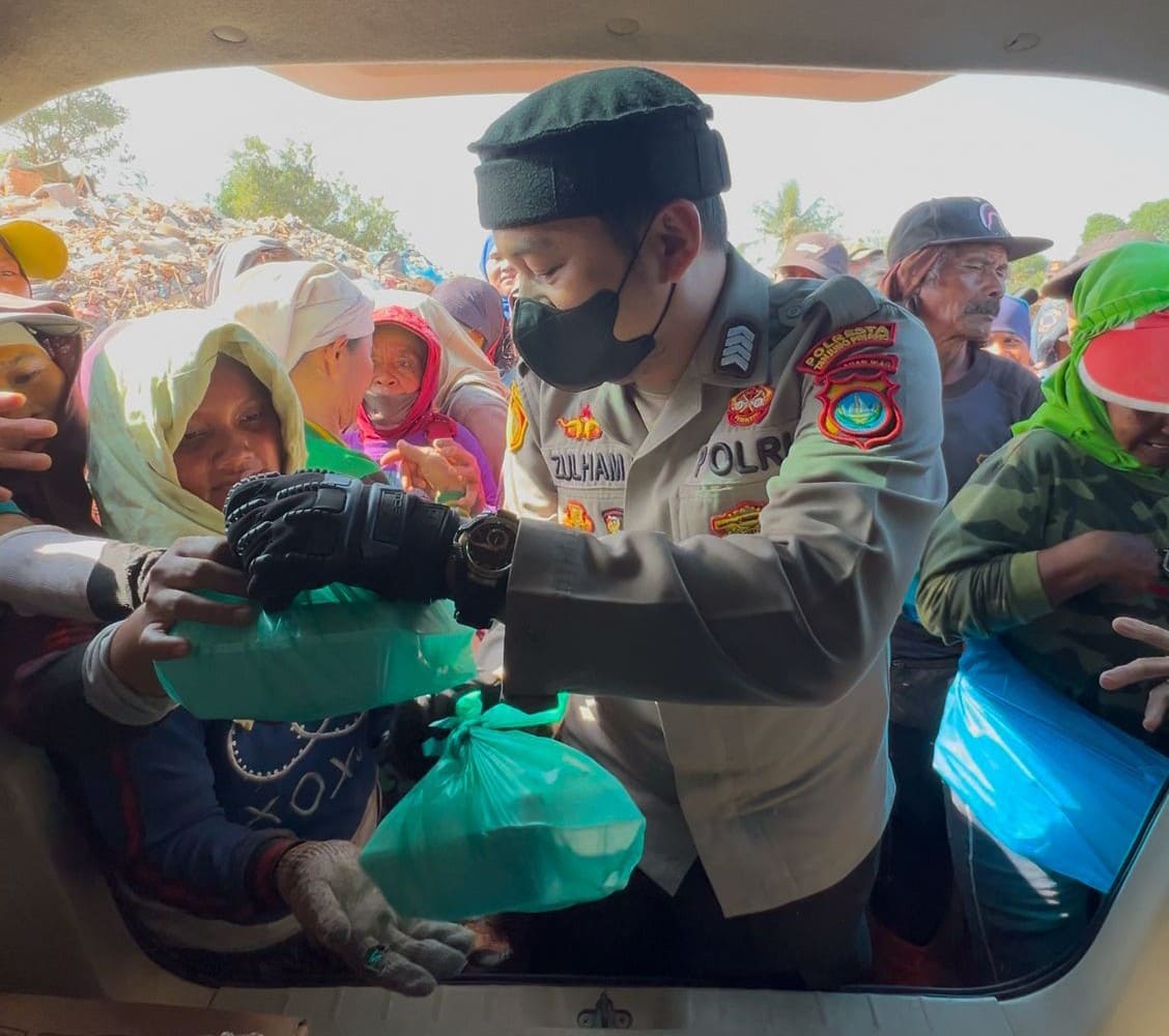 Tampak jelas kebahagiaan dan rasa haru di wajah-wajah warga TPA Punggur saat menerima makanan bergizi yang dibagikan oleh Bripka Zulhamsyah.