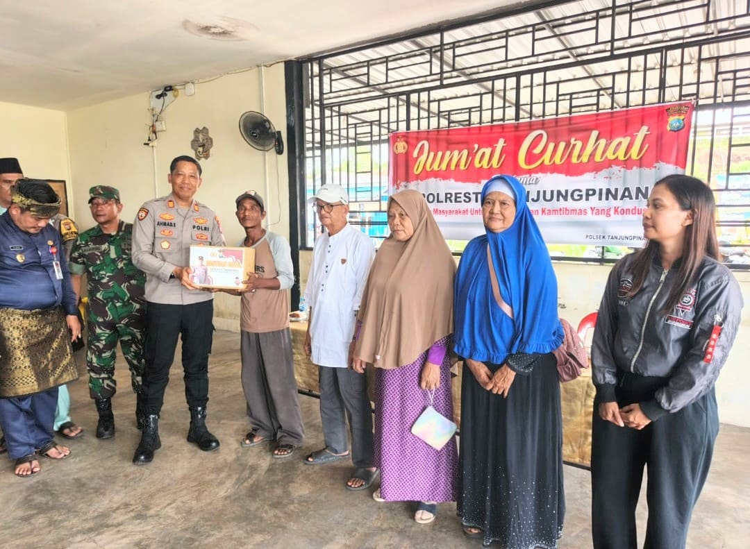 Sebagai penutup, kegiatan Jumat Curhat dilanjutkan dengan penyerahan bantuan sosial berupa paket sembako kepada warga yang membutuhkan.