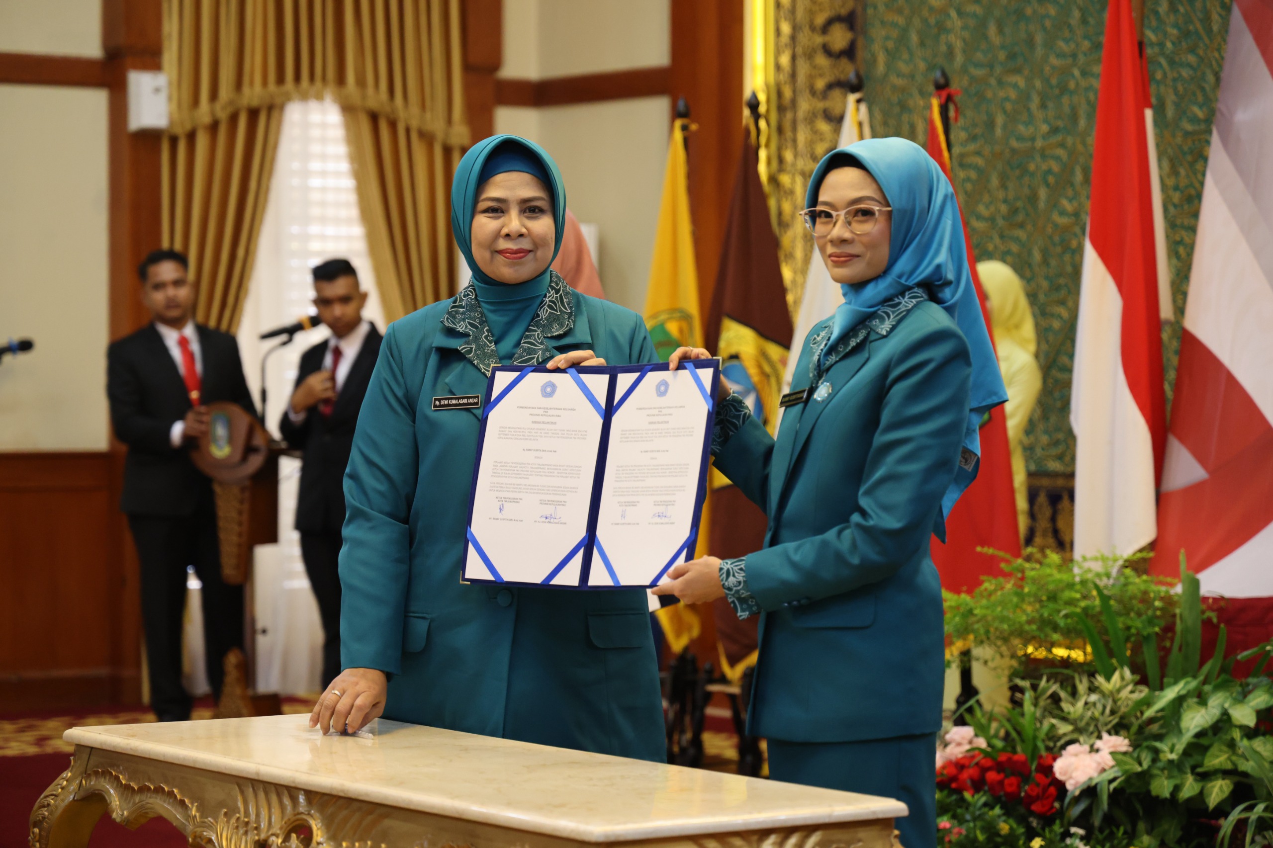 Ketua TP-PKK Provinsi Kepulauan Riau (Kepri) Dewi Kumalasari, resmi melantik Ranny Gusfita Sari sebagai Penjabat (Pj) Ketua TP-PKK Kota Tanjungpinang di Gedung Daerah, Kota Tanjungpinang, Kamis (21/9/2023).