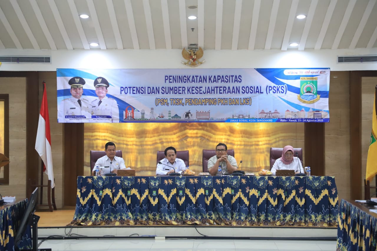 Guna meningkatkan keterampilan Pekerja Sosial Masyarakat (PSM), Tenaga Kesejahteraan Sosial Kecamatan (TKSK), Pendamping Program Keluarga Harapan (PKH) dan Lembaga Kesejahteraan Sosial (LKS) di Kota Tangerang. Pemerintah Kota (Pemkot) Tangerang melalui Dinas Sosial (Dinsos) menggelar Pembinaan Peningkatan Kapasitas Potensi dan Sumber Kesejahteraan Sosial, di Ruang Akhlakul Karimah, Puspem Kota Tangerang, Rabu (23/8/2023).