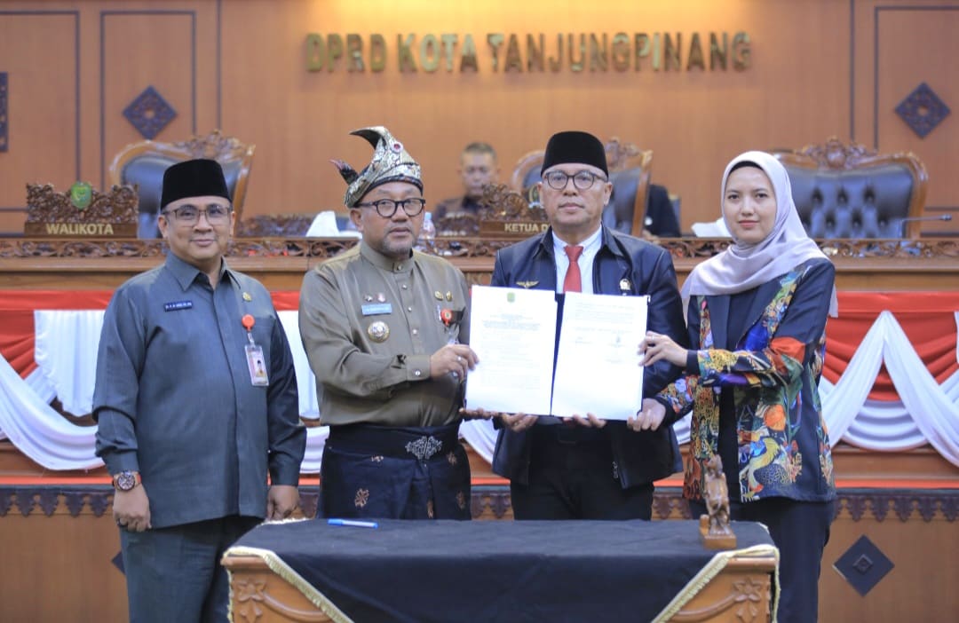 Rapat paripurna yang berlangsung di Ruang Sidang DPRD Kota Tanjungpinang, Kamis (8/1/2026), dipimpin Ketua DPRD Kota Tanjungpinang Agus Djurianto dan dihadiri Wali Kota Tanjungpinang Lis Darmansyah. Agenda tersebut diakhiri dengan penandatanganan persetujuan bersama antara Wali Kota dan pimpinan DPRD atas penetapan Ranperda menjadi Perda.