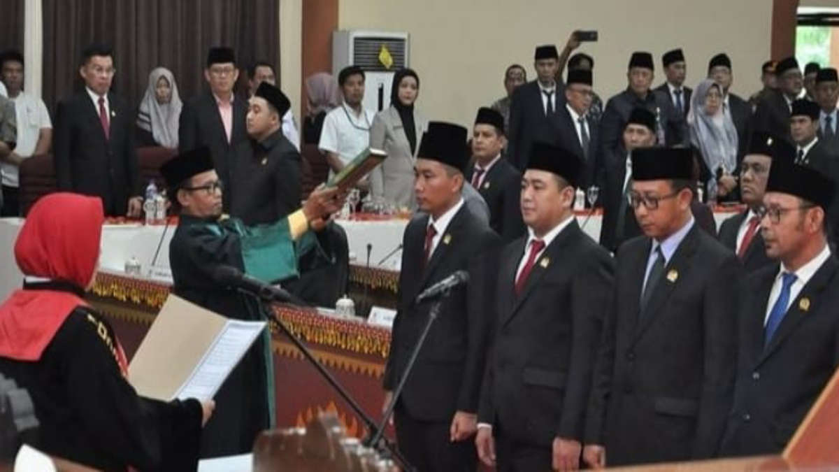 Para pimpinan yang dilantik, yaitu Agung Setyo Utomo dari PDIP sebagai Ketua DPRD, M. Rangga Putra Hakim dari Partai Gerindra sebagai Wakil Ketua I, Irwandi Suralaga dari PKB sebagai Wakil Ketua II, serta Bunyamin dari PAN sebagai Wakil Ketua III, mengucapkan ikrar sumpah yang dipimpin langsung oleh Ketua Pengadilan Negeri Kota Agung Eva Susiana.