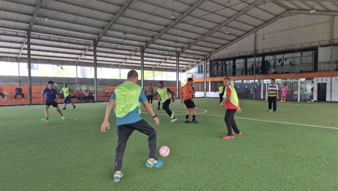 Kapolresta Tanjungpinang Kombes Pol Indra Ranu Dikarta mengajak para pejabat utama dan kapolsek jajaran untuk berolahraga bersama dengan bermain futsal di lapangan belakang Polresta Tanjungpinang, Senin (16/2/2026).