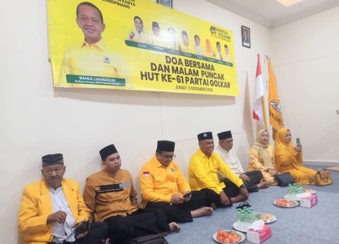 Dewan Perwakilan Daerah (DPD) II Partai Golkar Kota Tanjungpinang menggelar doa bersama pada malam puncak peringatan Hari Ulang Tahun (HUT) ke-61 Partai Golkar, Jumat (5/12/2025). Kegiatan berlangsung di Sekretariat DPD II Partai Golkar Tanjungpinang, Jalan Tugu Pahlawan.