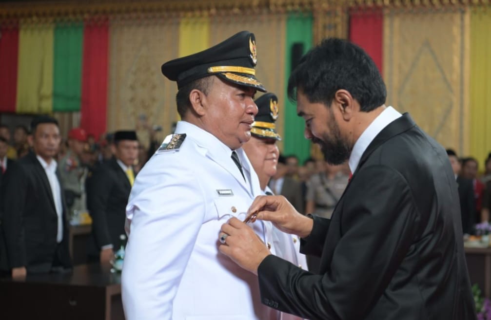 Gubernur Aceh Muzakir Manaf melantik Salim Fakhry-Heri Al Hilal sebagai Bupati dan Wakil Bupati Aceh Tenggara periode 2025-2030.