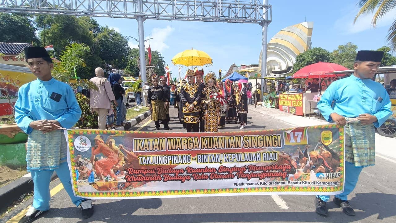 Ikatan Warga Kuantan Singingi (Iwakusi) Tanjungpinang-Bintan ikut berpartisipasi aktif dalam Pawai Budaya memperingati Hari Jadi ke-24 Kota Otonom Tanjungpinang, yang digelar di Kawasan Dataran Gurindam 12, Tepi Laut, Sabtu (11/10/2025). Rute pawai dimulai dari Jalan Merdeka dan berakhir di kawasan Tugu Sirih.