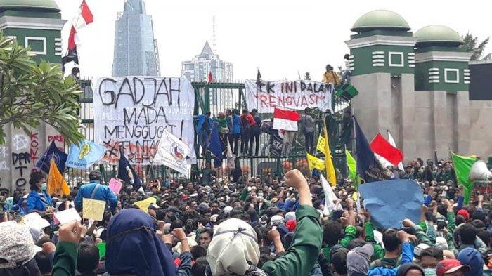 Pagar kompleks DPR RI di Jalan Gatot Subroto berhasil dijebol, massa mulai melempari polisi dengan batu, kemudian dibalas dengan satu kali tembakan gas air mata oleh tim gabungan TNI/Polri. Setelahnya, bentrokan antara dua kubu, massa dan aparat tak dapat dielakkan. Ribuan massa ini melakukan aksi demonstrasi untuk menolak RUU Pilkada.