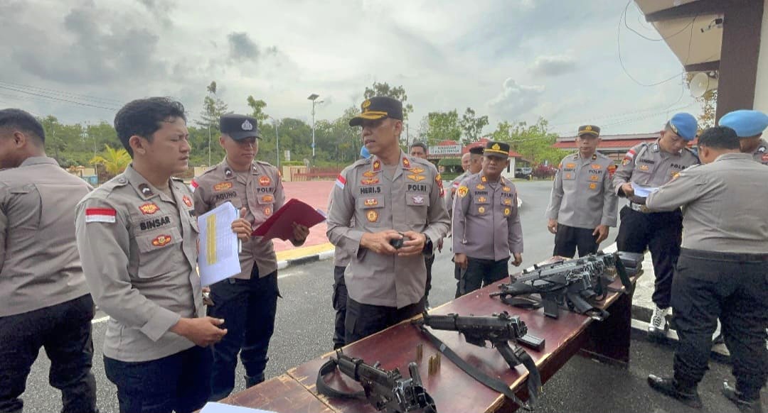 Polres Bintan melakukan pemeriksaan senjata api (senpi) dinas milik personel sebagai bagian dari persiapan pengamanan menjelang Hari Raya Idulfitri 1447 Hijriah.
