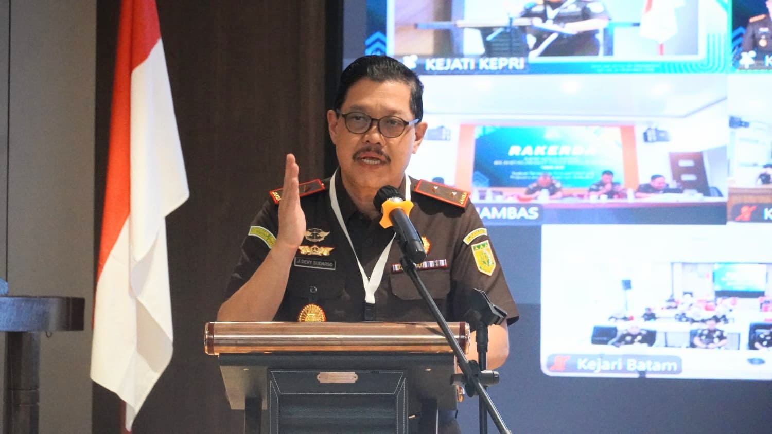 Kepala Kejaksaan Tinggi Kepulauan Riau (Kejati Kepri) J. Devy Sudarso membuka Rapat Kerja Daerah (Rakerda) Kejati Kepri Tahun 2025 yang digelar di Asialink Hotel Batam by Prasanthi, Senin (15/12/2025). Rakerda mengusung tema “Kejaksaan Berintegritas, Penegakan Hukum yang Profesional untuk Masyarakat Kepri Berkeadilan”.
