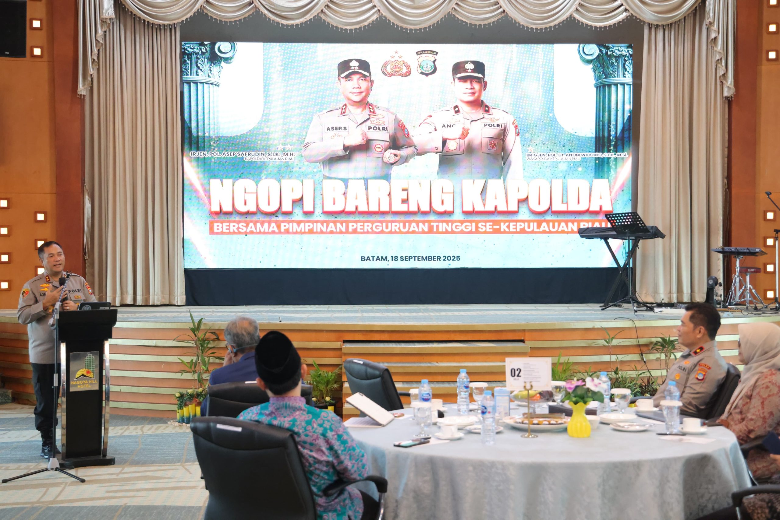 Kepolisian Daerah Kepulauan Riau (Polda Kepri) menggelar kegiatan Ngopi Bareng Kapolda Kepri bersama pimpinan perguruan tinggi se-Kepri di Hotel Nagoya Hill, Kota Batam, Kamis (18/9/2025).