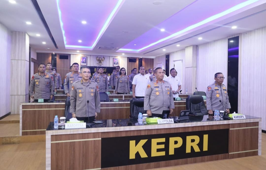 Kegiatan yang juga dirangkaikan dengan bedah buku Strategi Polri dalam Pemberantasan Tindak Pidana Perdagangan Orang Tahun 2026 itu diikuti Kapolda Kepri dari Ruang Video Conference Polda Kepri dan dihadiri para pejabat utama Polda Kepri.