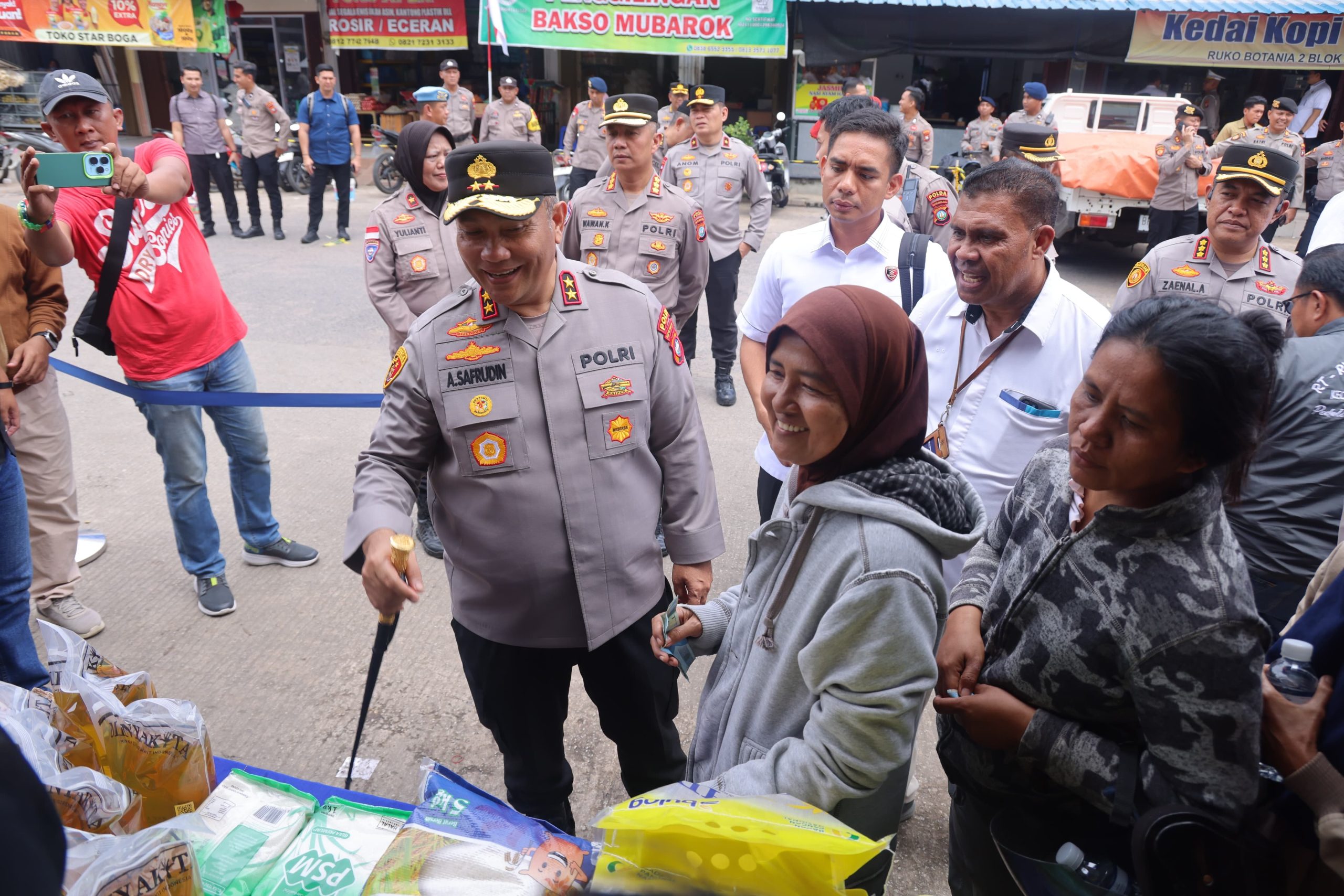 Kepala Kepolisian Daerah Kepulauan Riau (Kapolda Kepri) Irjen Pol Asep Safrudin meninjau langsung pelaksanaan Gerakan Pangan Murah di Pasar Botania 2, Kota Batam, Rabu (13/8/2025).