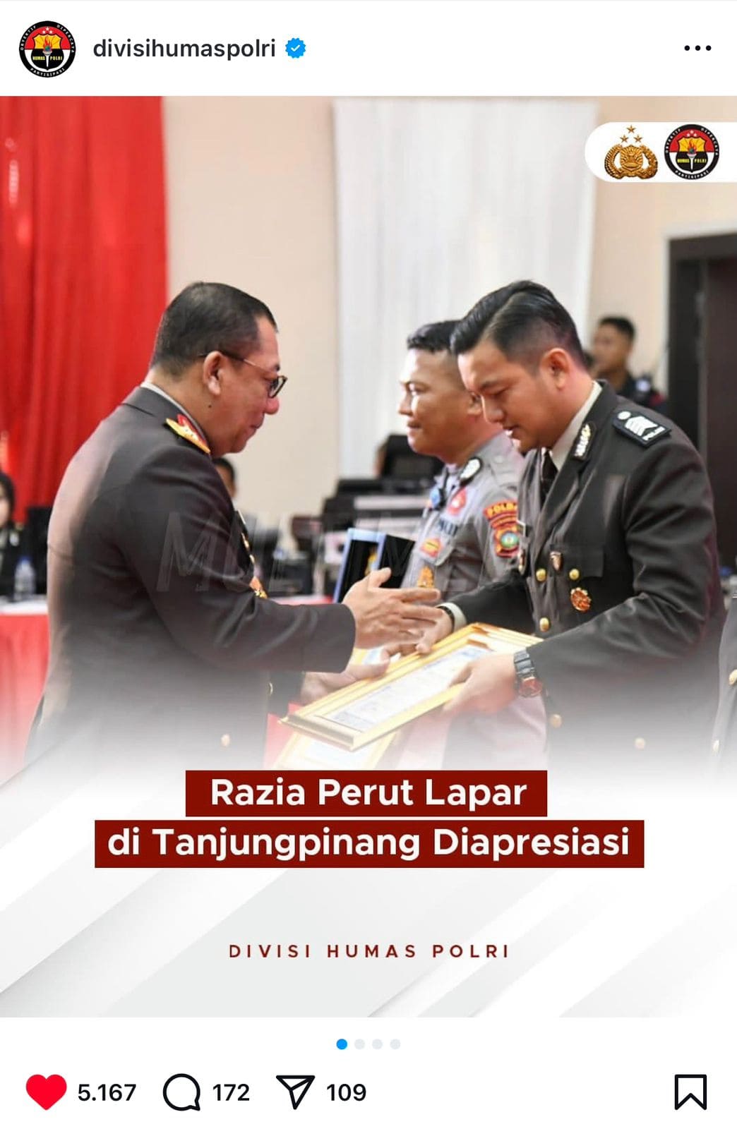 Sosok Bripka Zulhamsyah Putra, anggota Satuan Intelijen dan Keamanan (Sat Intelkam) Polresta Tanjungpinang, kembali mendapat apresiasi setelah aksinya dalam program Razia Perut Lapar viral di media sosial (medsos). Kebaikannya menginspirasi banyak orang hingga akun resmi Divisi Humas Polri dan Polda Metro Jaya mengangkat kisahnya.