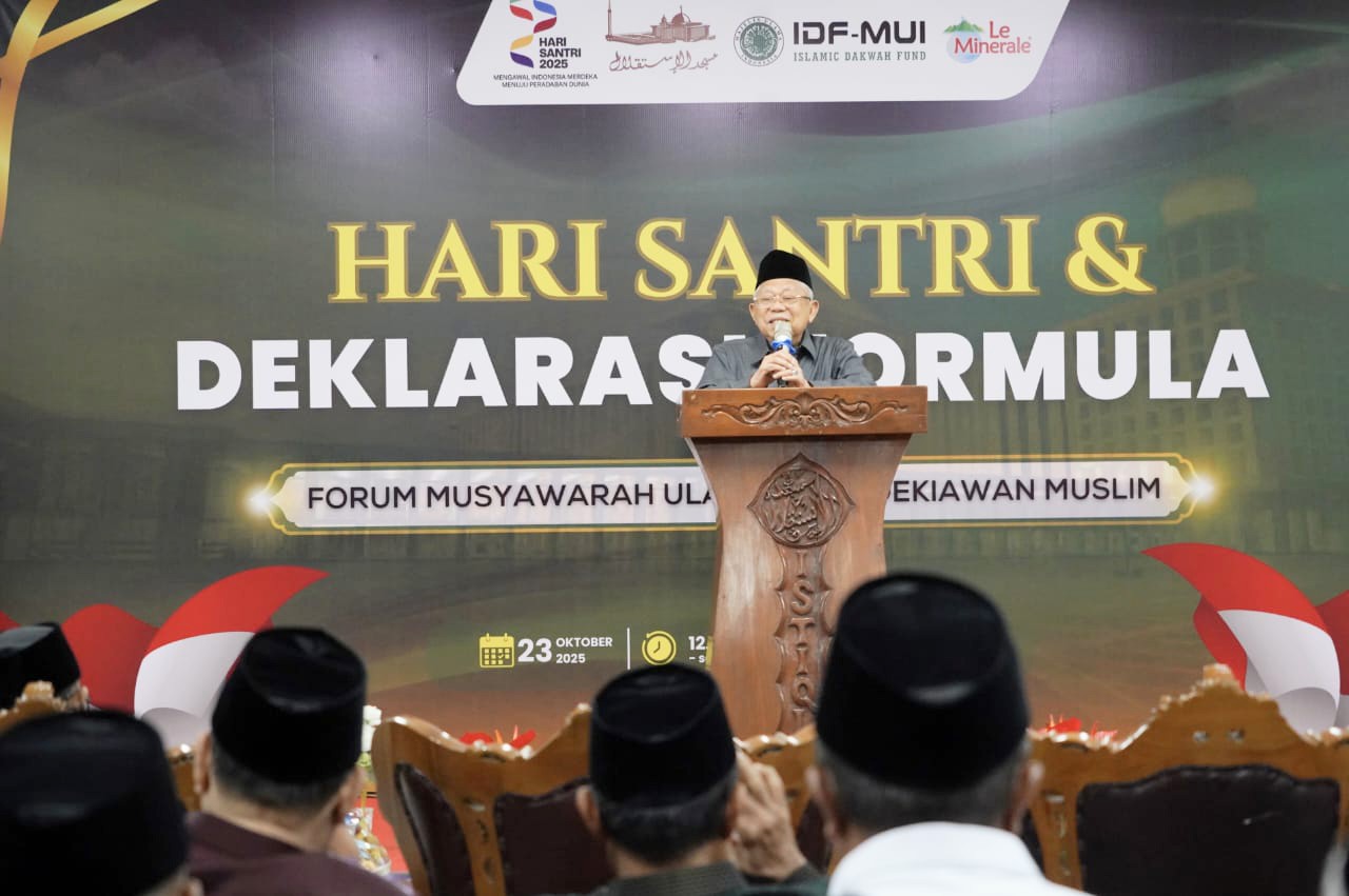 Dalam momentum peringatan Hari Santri Nasional 2025, Wakil Presiden Republik Indonesia ke-13, Prof. Dr. KH. Ma’ruf Amin, bersama Menteri Agama, Prof. Dr. KH. Nasaruddin Umar, MA, meresmikan berdirinya Forum Musyawarah Ulama & Santri (Formula Santri) di Aula PKU-MI, Masjid Istiqlal, Jakarta Pusat, Kamis (23/10/2025).