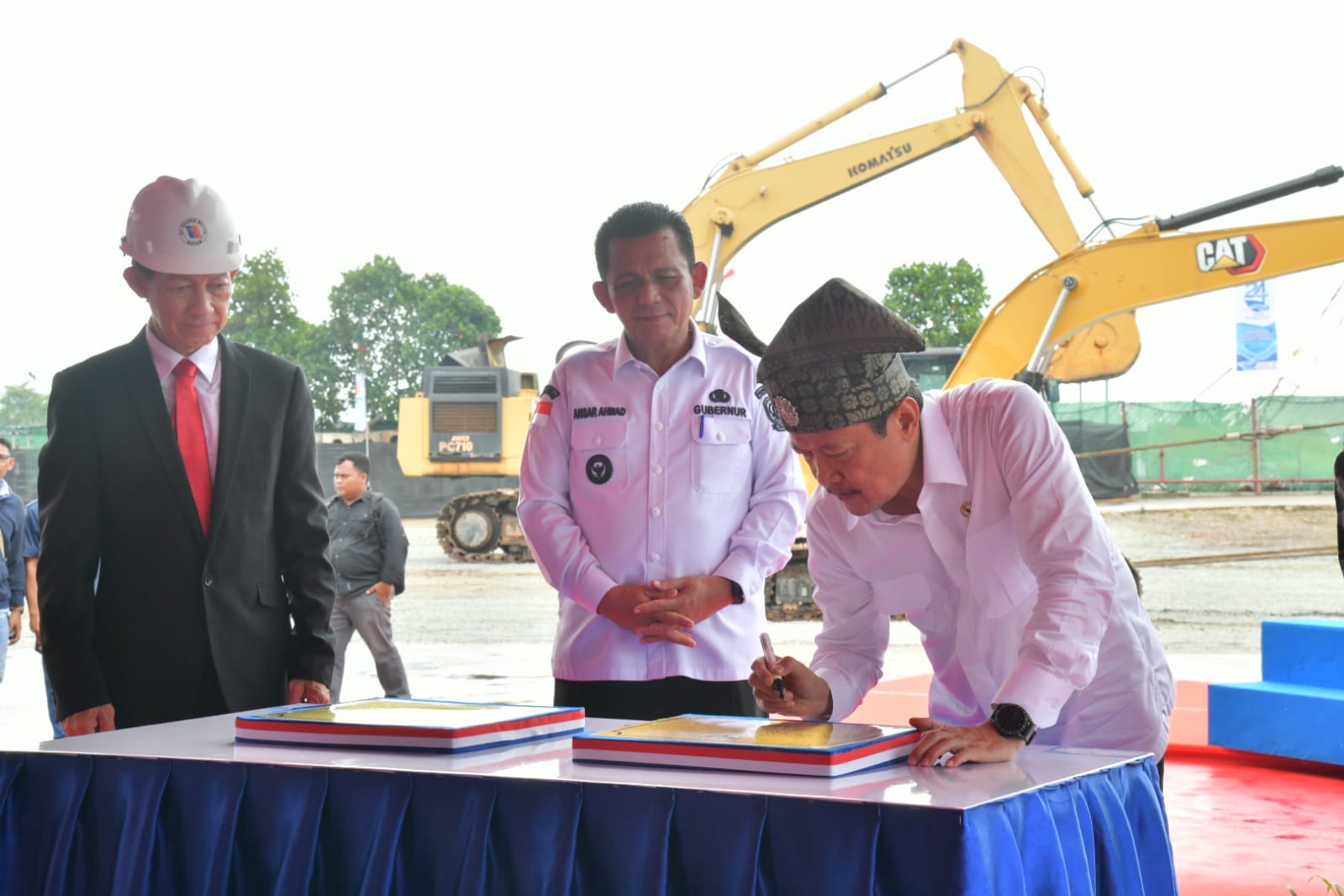 Gubernur Provinsi Kepulauan Riau (Kepri) Ansar Ahmad, berkesempatan mendampingi Menteri Kelautan dan Perikanan Sakti Wahyu Trenggono, pada peresmian dan peluncuran dua Kapal Pengawas Kelautan dan Perikanan Direktorat Jenderal Sumber Daya Kelautan dan Perikanan Pengawasan (Ditjen PSDKP) pada PT. Galangan Kapal Laut Palindo di Kota Batam, Kamis (28/12/2023).