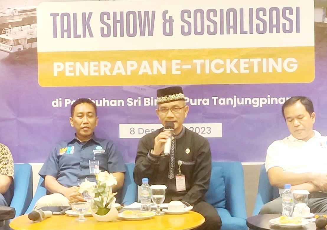 Penjabat (Pj) Wali Kota Tanjungpinang Hasan, yang diwakili oleh Asisten III Sekretariat Daerah Kota (Setdako) Tanjungpinang Augus Raja Unggul, menghadiri kegiatan talk show dan sosialisasi penerapan e-ticketing di Pelabuhan Sri Bintan Pura (SBP) Tanjungpinang yang digelar oleh PT. Mitra Kasih Perkasa, di Hotel Nite and Day Tanjungpinang, Jl. Bintan No.51, Kota Tanjungpinang, Provinsi Kepulauan Riau (Kepri), Jum’at (8/12/2023).