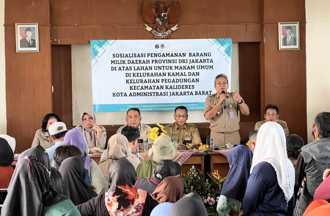 Pemerintah Kota Administrasi Jakarta Barat menggelar sosialisasi penataan dan pengamanan aset pemerintah daerah yang berada di atas lahan yang diperuntukkan sebagai Tempat Pemakaman Umum (TPU) di Kelurahan Kamal dan Pegadungan. Kegiatan berlangsung di Aula Kantor Kelurahan Kamal, Kecamatan Kalideres, Senin (17/11/2025).