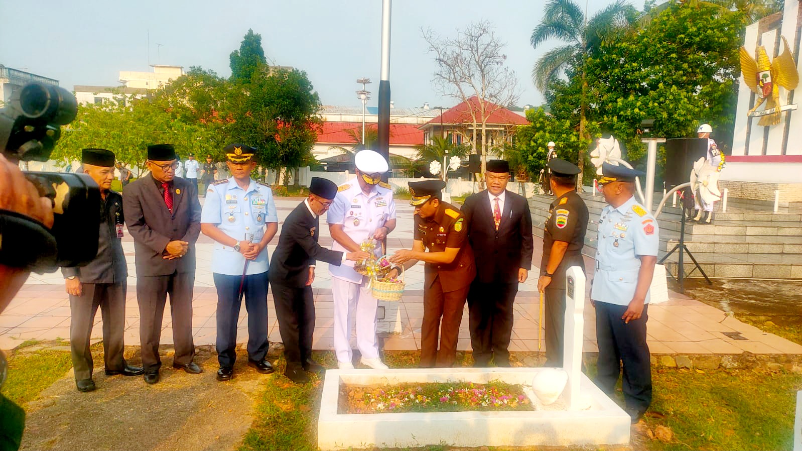 Upacara ziarah tersebut di pimpin oleh Danrem 033/Wira Pratama Brigjen TNI Jimmy Watuseke, dan juga dihadiri oleh Komandan Lanud Raja Haji Fisabilillah Kolonel Navigator Arief Budiman, serta petinggi-petinggi unsur TNI lainnya.