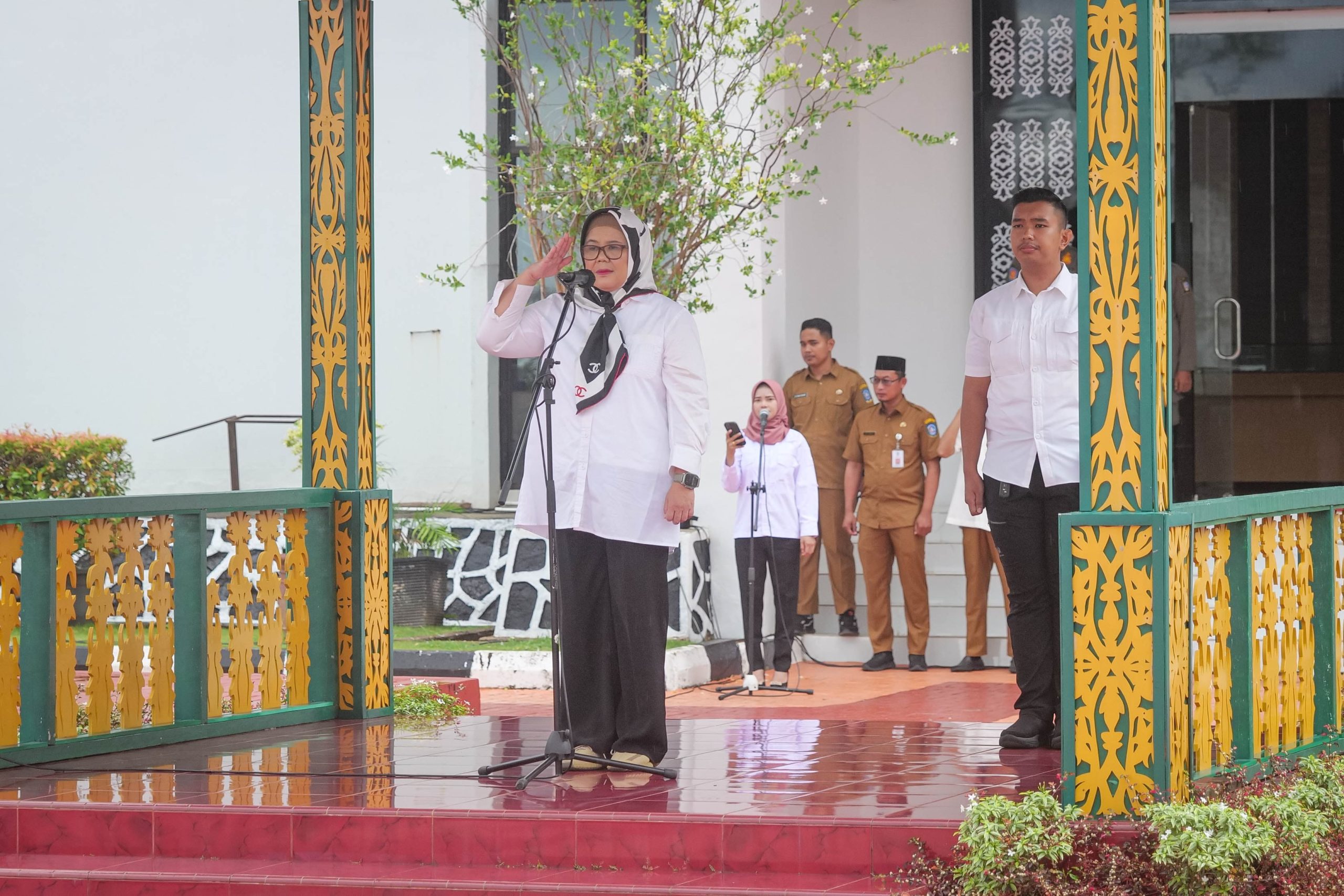Pelaksana Tugas (Plt) Gubernur Provinsi Kepulauan Riau (Kepri) Marlin Agustina, memimpin apel pagi di halaman kantor Gubernur Kepri, Dompak, Kota Tanjungpinang, Senin (30/9/2024).