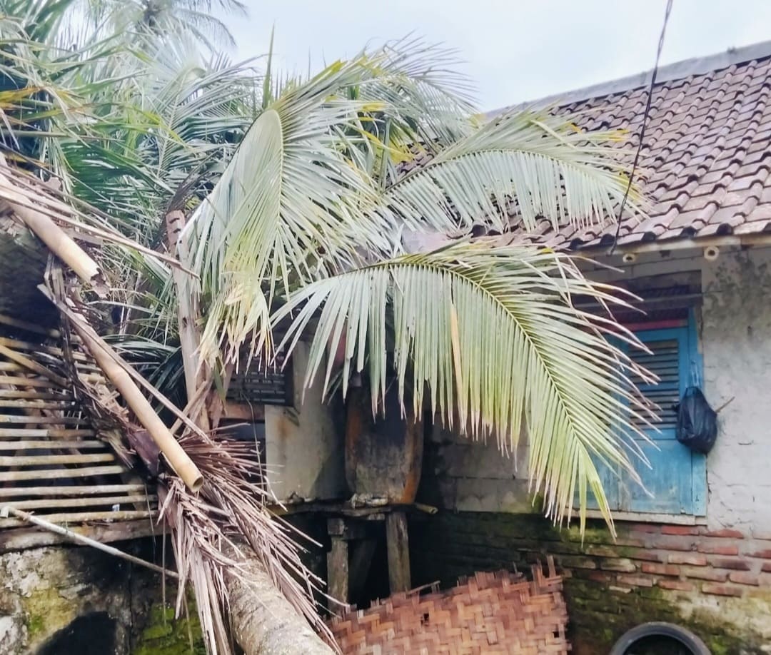 Rumah yang tertimpa pohon diketahui milik Udi Sugianto. Batang pohon kelapa berukuran besar itu roboh secara tiba-tiba saat sebagian besar warga masih terlelap tidur. Beruntung, tidak ada korban jiwa dalam kejadian tersebut.