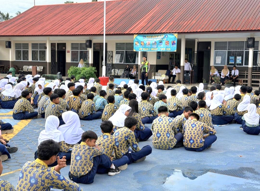 Upaya menanamkan kesadaran tertib berlalu lintas terus digencarkan jajaran kepolisian, salah satunya melalui edukasi langsung ke lingkungan sekolah. Satuan Lalu Lintas (Satlantas) Polres Lingga menggelar kegiatan Police Go To School di SMP Negeri 2 Singkep, Kabupaten Lingga, Rabu (15/4/2026).