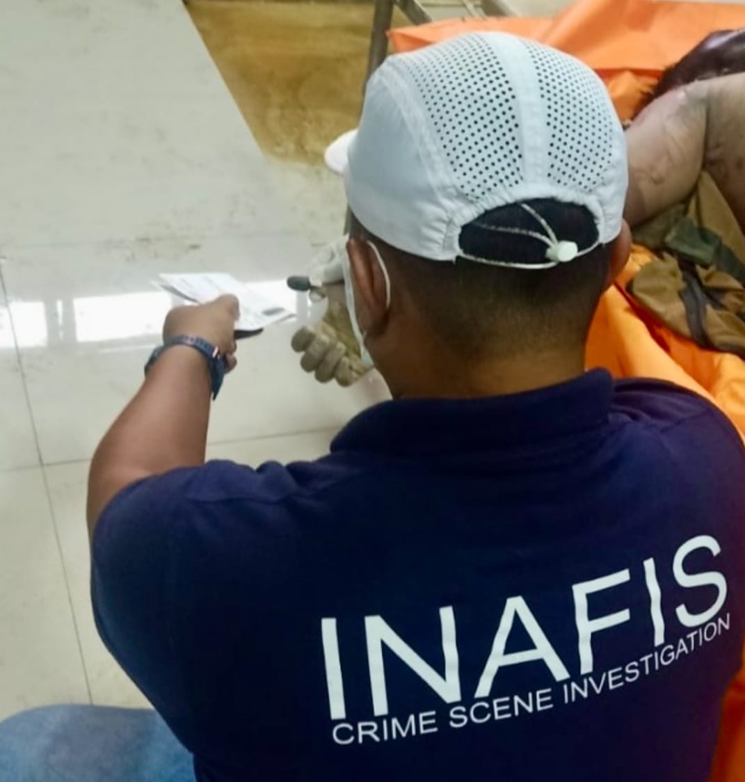 Tim Inafis Polres Aceh Tenggara saat visum et repertum serta proses identifikasi dengan menggunakan Indonesia Portable System (IPS) kepada jasad korban. (Yuda)