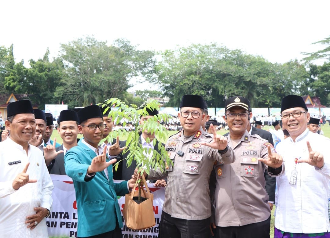 Acara diawali dengan penyampaian edukasi Green Policing usia dini oleh Kapolres Kuantan Singingi AKBP R. Ricky Pratidiningrat, S.I.K., M.H. yang kemudian dilanjutkan dengan penyerahan bibit pohon kepada perwakilan santri sebagai simbol kepedulian terhadap pelestarian alam.