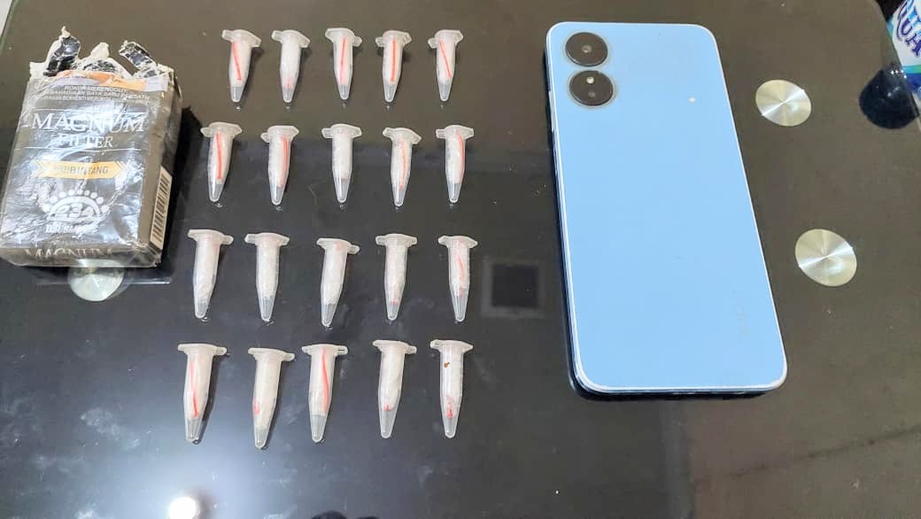 Dari hasil penggeledahan, polisi menemukan barang bukti berupa satu bungkus bekas rokok yang di dalamnya berisi 20 paket plastik bening berisi kristal putih yang diduga narkotika golongan I jenis sabu. Selain itu, turut diamankan satu unit telepon genggam merek Oppo berwarna biru.
