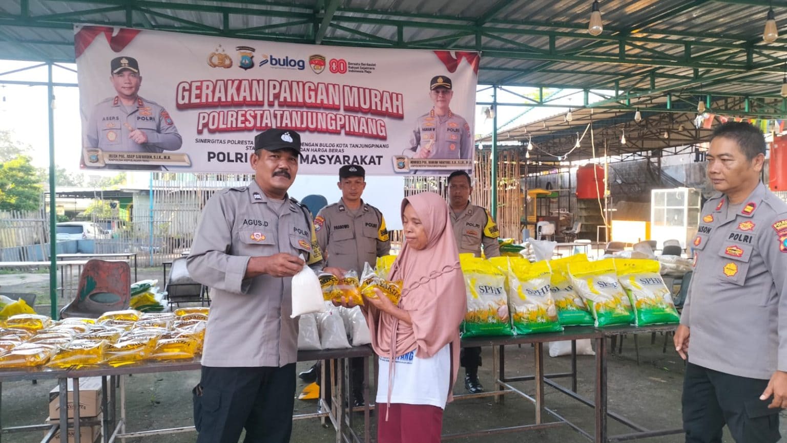 Kegiatan ini digelar Polresta Tanjungpinang bersama Polsek Tanjungpinang Barat bekerja sama dengan Perum Bulog Kota Tanjungpinang.