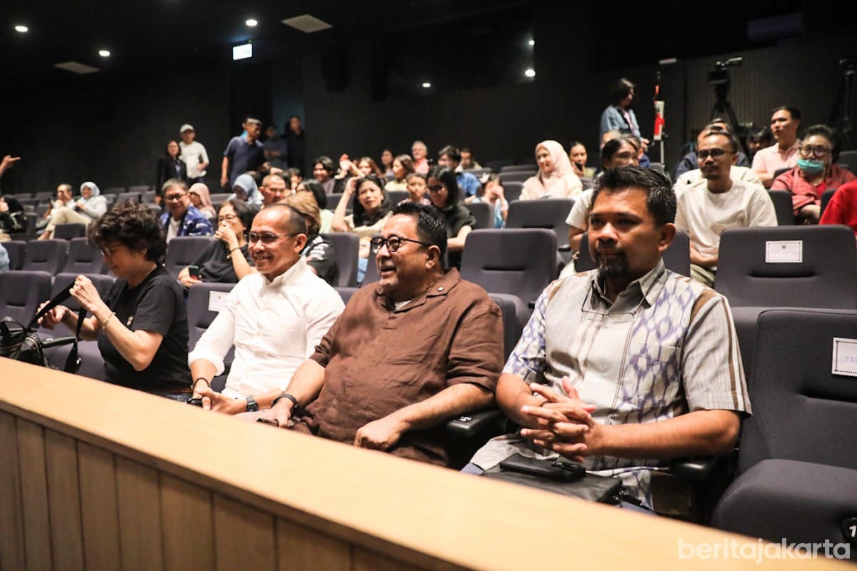 Wakil Gubernur DKI Jakarta, Rano Karno, mengapresiasi pertunjukan musikal Perempuan Punya Cerita yang digelar di Graha Bhakti Budaya, Taman Ismail Marzuki (TIM), Menteng, Jakarta Pusat, Minggu (7/9/2025).