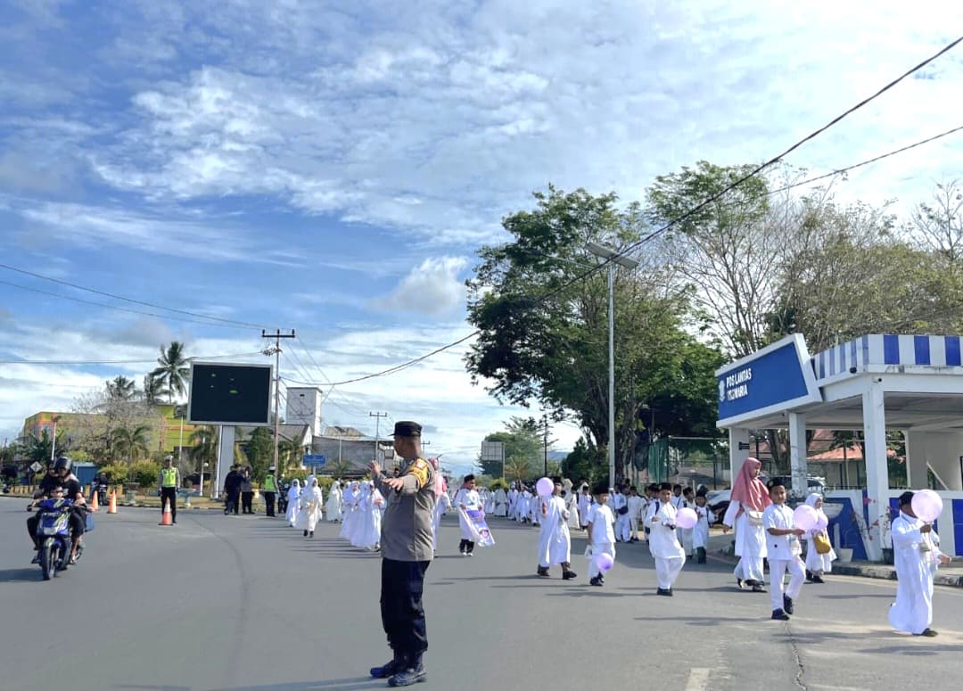 Ratusan warga memadati sejumlah ruas jalan di Dabo Singkep untuk mengikuti pawai menyambut Bulan Suci Ramadan 1447 Hijriah/2026 Masehi, Senin (16/2/2026). Untuk memastikan kegiatan berlangsung aman dan tertib, Polres Lingga mengerahkan personel gabungan melakukan pengamanan di sepanjang rute pawai.
