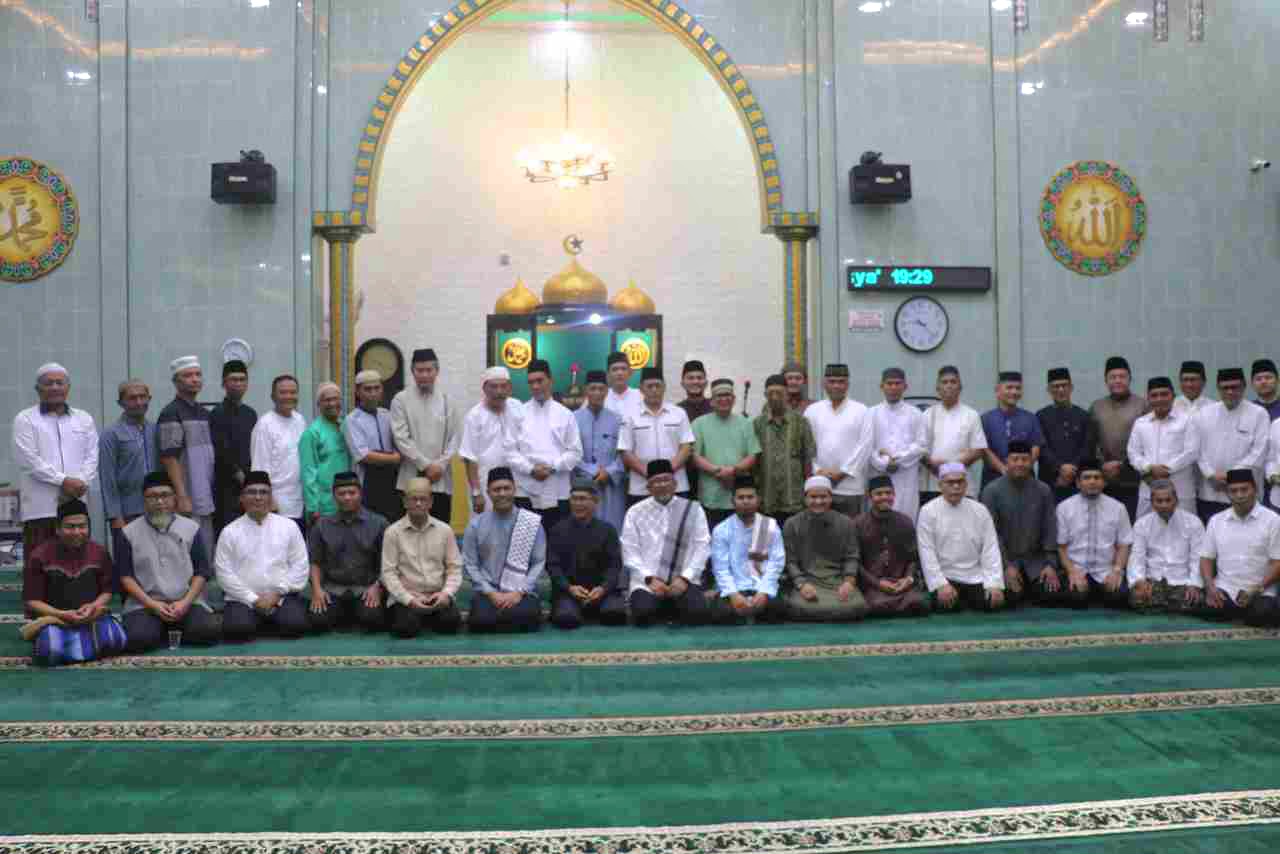 Wali Kota Tanjungpinang Lis Darmansyah bersama Wakil Wali Kota Raja Ariza melanjutkan rangkaian Safari Ramadan 1447 Hijriah dengan melaksanakan salat tarawih berjamaah di Masjid Jami’ Al Jannatul Ma’wa, Jalan Soekarno Hatta, Kelurahan Tanjungpinang Barat, Kamis (26/2/2026).