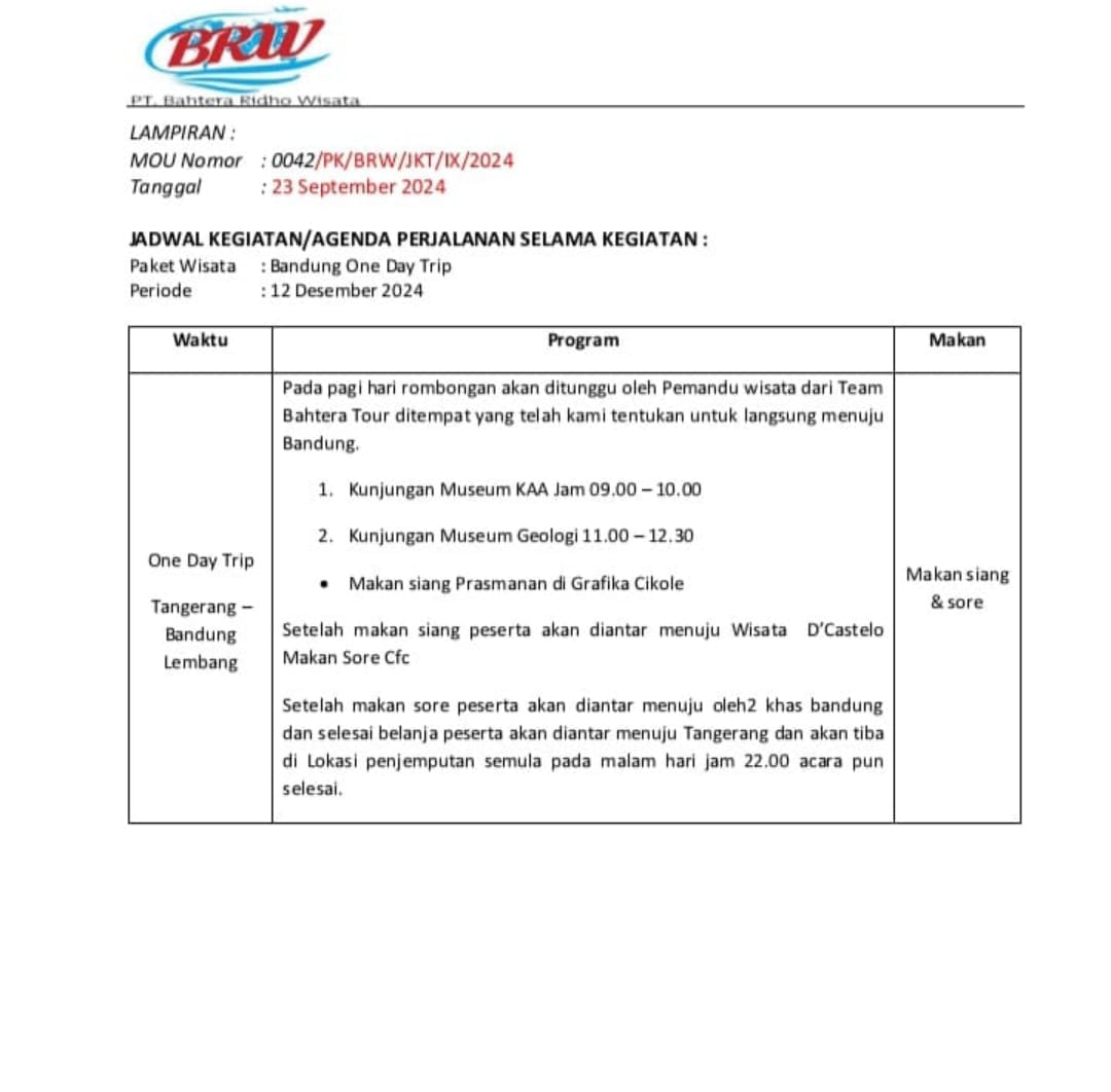 Surat Pernyataan persetujuan Orang Tua Murid dalam acara Outing Class