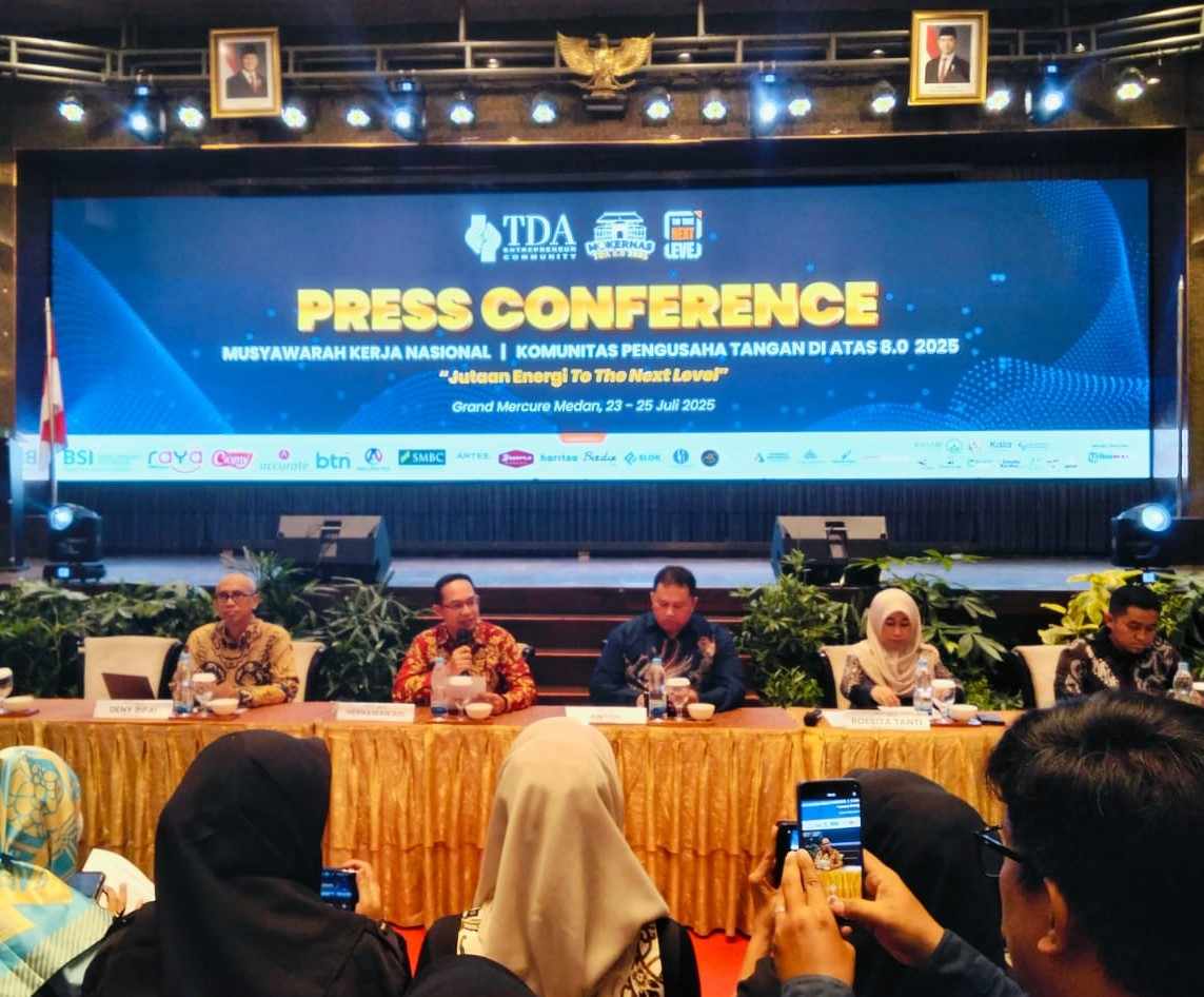 Komunitas Pengusaha Tangan di Atas (TDA) menggelar Musyawarah Kerja Nasional (Mukernas) ke-8 di Medan, Sumatera Utara. Agenda tiga hari yang berlangsung pada 23–25 Juli 2025 ini dipusatkan di Hotel Grand Mercure dan dihadiri perwakilan pengurus dari seluruh Indonesia.