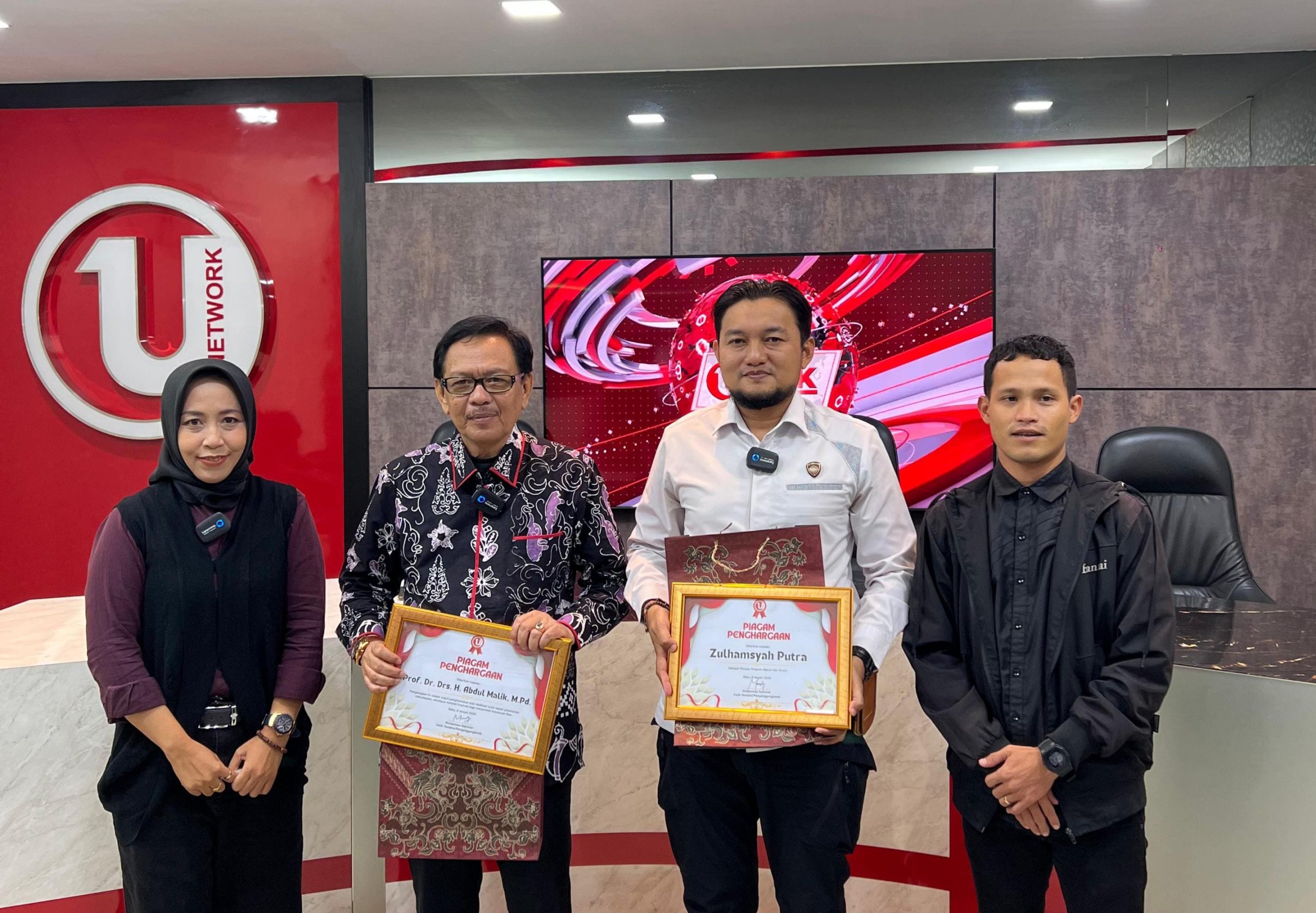 Ulasan Network memberikan penghargaan kepada tokoh berpengaruh di Kepulauan Riau (Kepri), Prof. Dr. Drs. Abdul Malik, M.Pd., dan Bripka Zulhamsyah Putra.