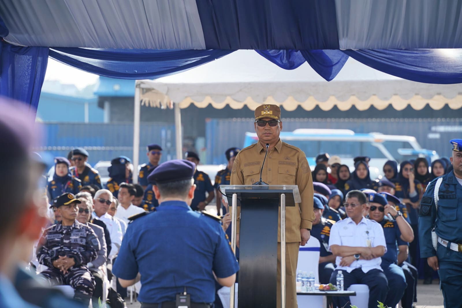 Wakil Gubernur (Wagub) Kepulauan Riau (Kepri) Nyanyang Haris Pratamura menjadi inspektur upacara pada Apel Gelar Pasukan National Marine Pollution Exercise (Marpolex) 2025 yang digelar di Pelabuhan Bintang 99 Persada, Batu Ampar, Kota Batam, Selasa (18/11/2025).
