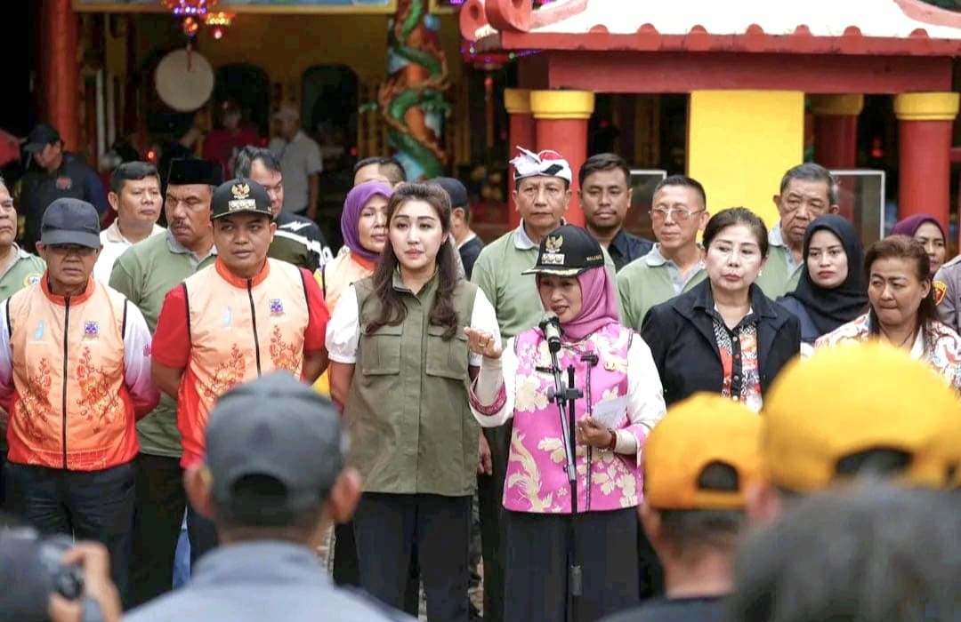Di dua lokasi tersebut, Iin bersama jajaran pemerintah, pengurus vihara dan masjid, serta unsur masyarakat bergotong royong membersihkan halaman, ruang ibadah, hingga karpet masjid. Satu unit armada pemadam kebakaran turut diterjunkan untuk membantu penyemprotan area halaman.